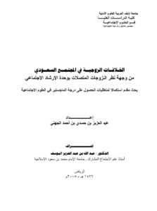 الخلافات الزوجية في المجتمع السعودي من وجهة نظر الزوجات المتصلات بوحدة الإرشاد الاجتماعي